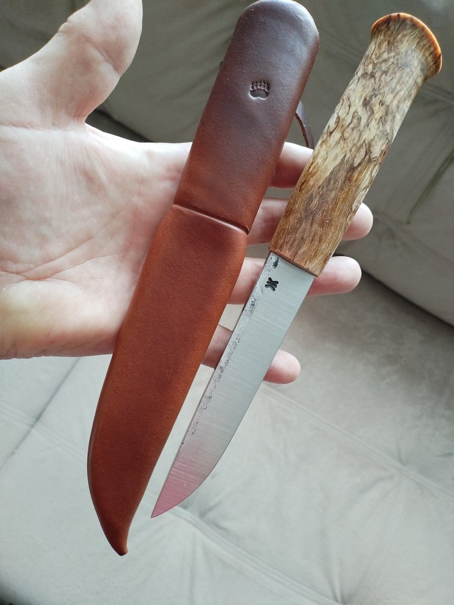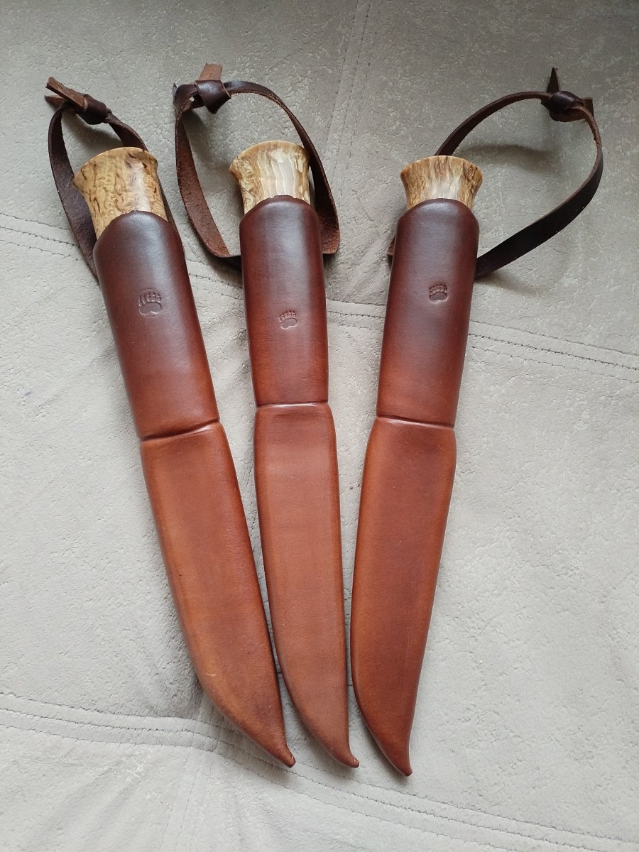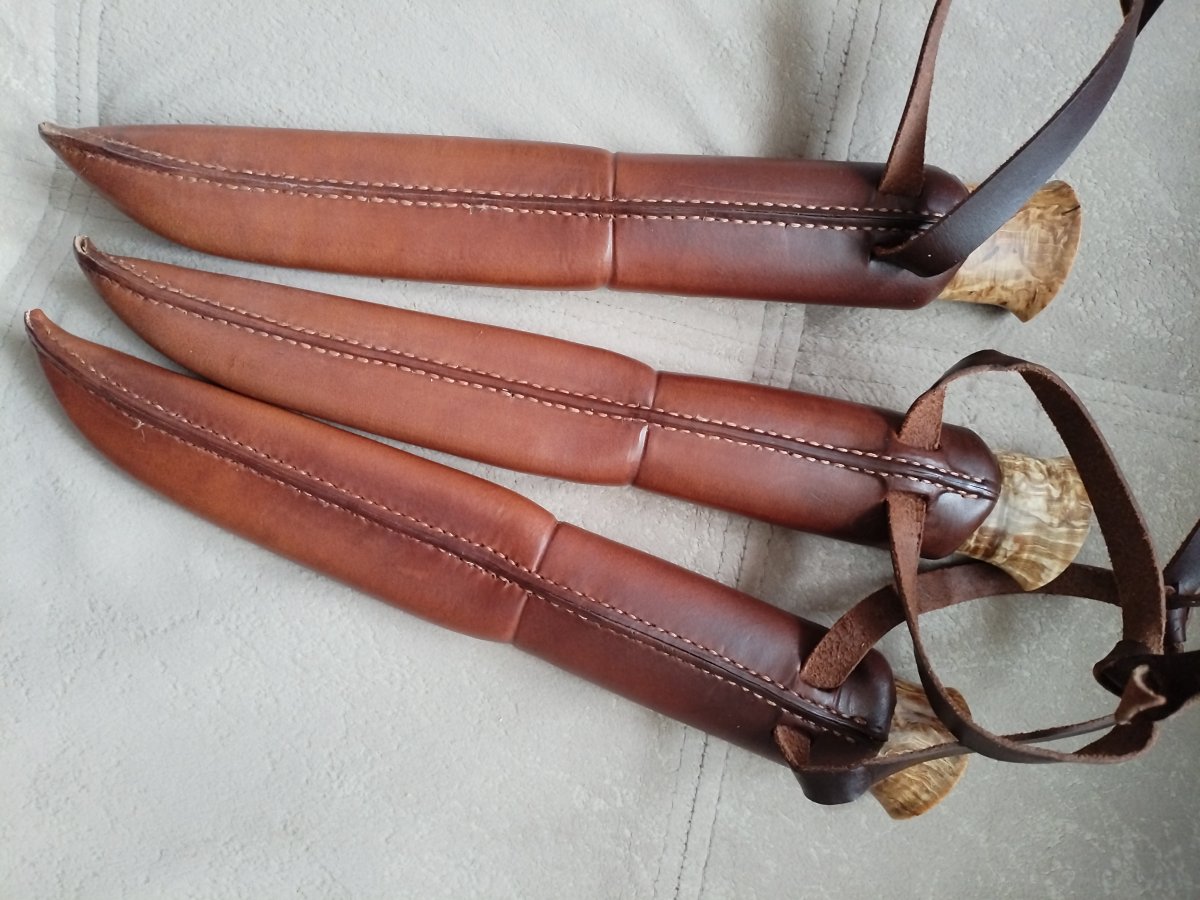 Ножны с сосновым вкладышем, пропитка костным маслом. Подвес свободный на кожаный хлястик