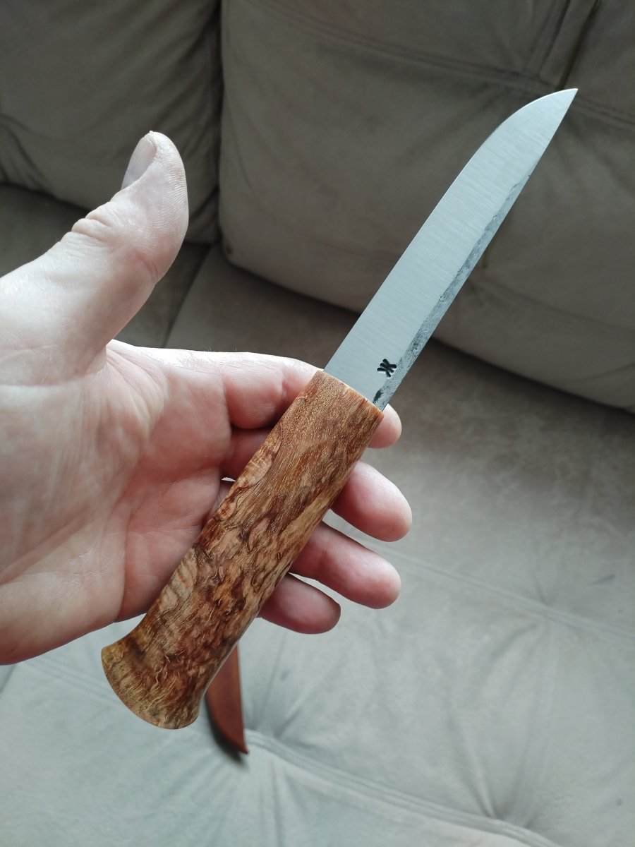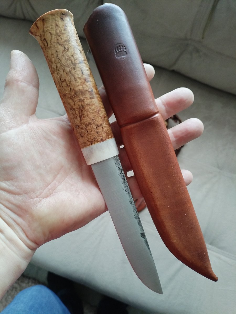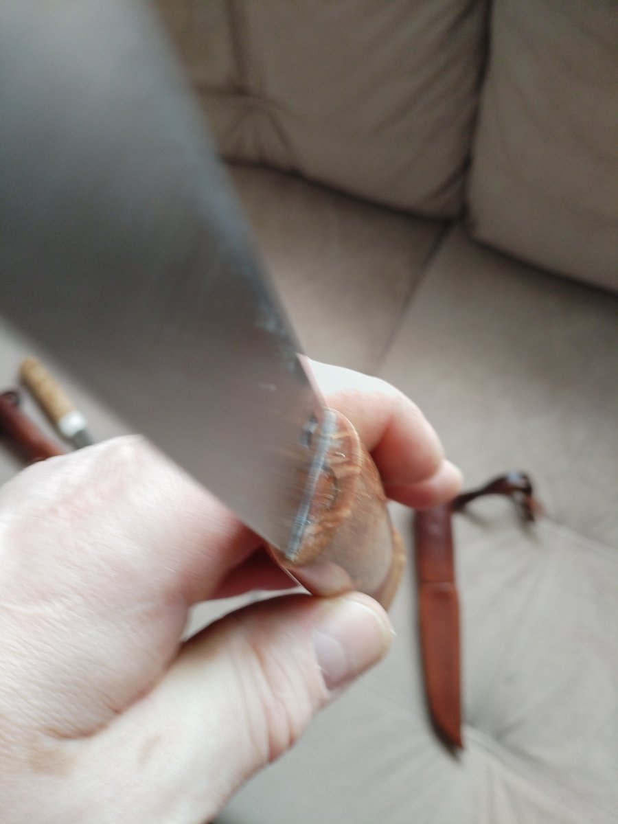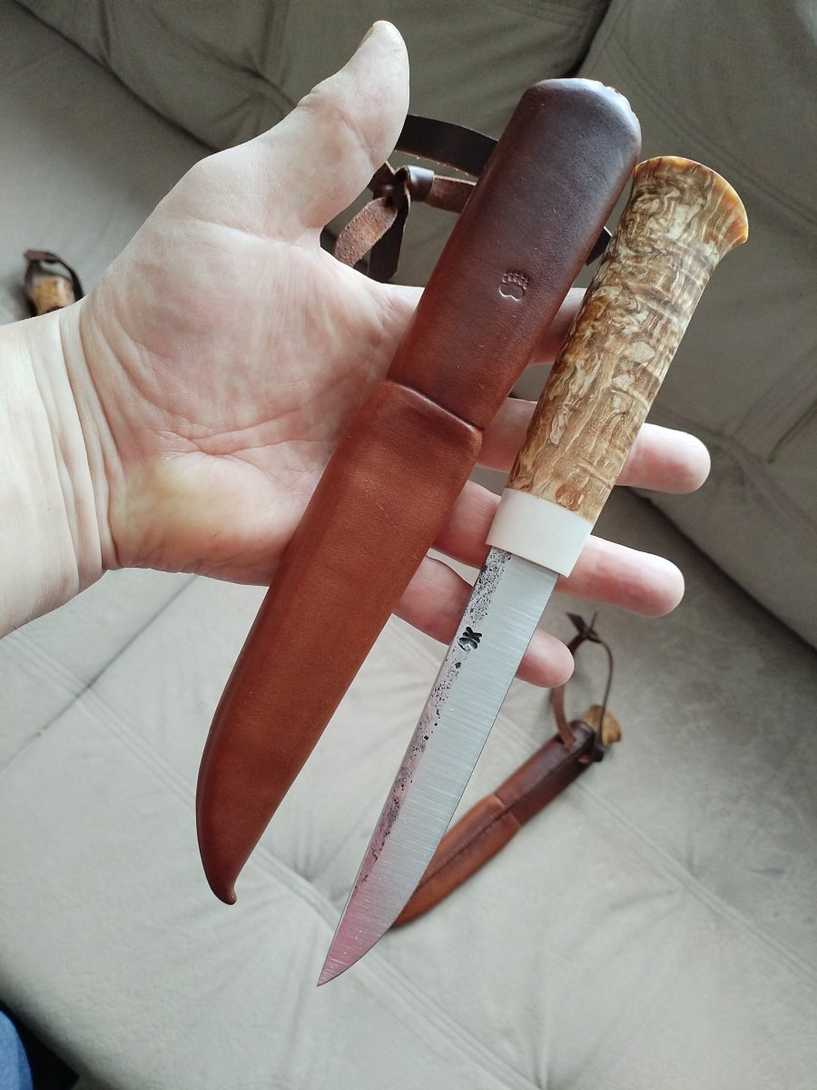 Ножны с сосновым вкладышем, пропитка костным маслом. Подвес свободный на кожаный хлястик