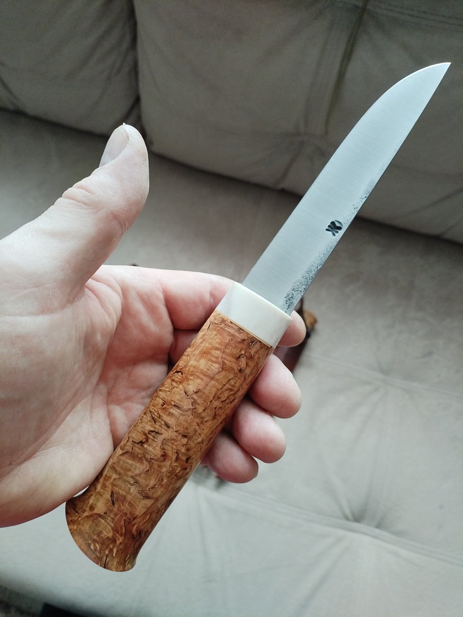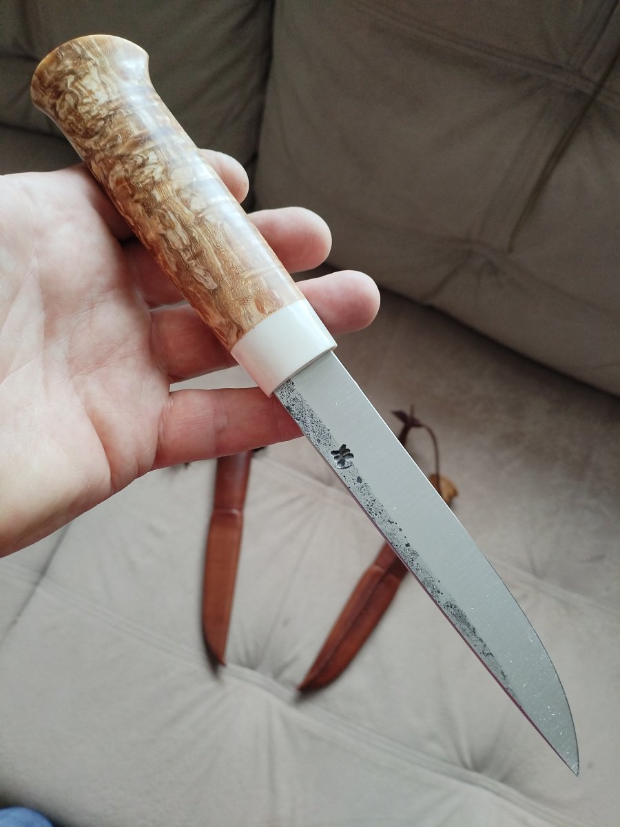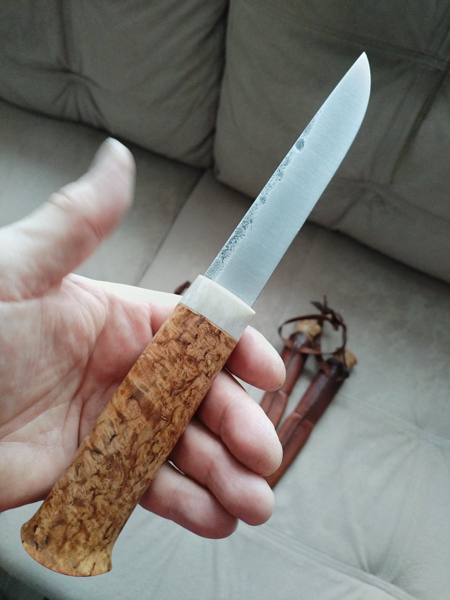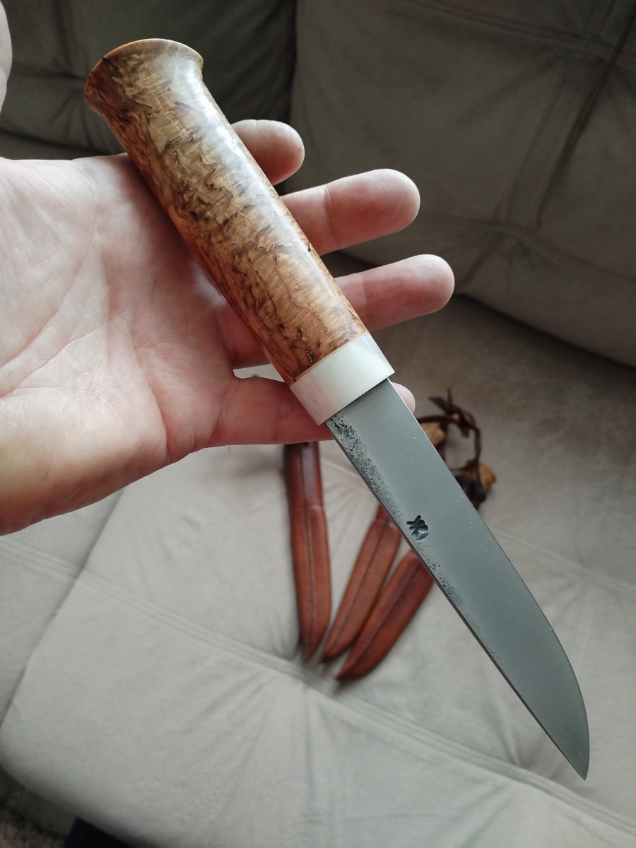 Рукоять карелка, рог лося, на 3*ем ноже монтаж всадной на чопики