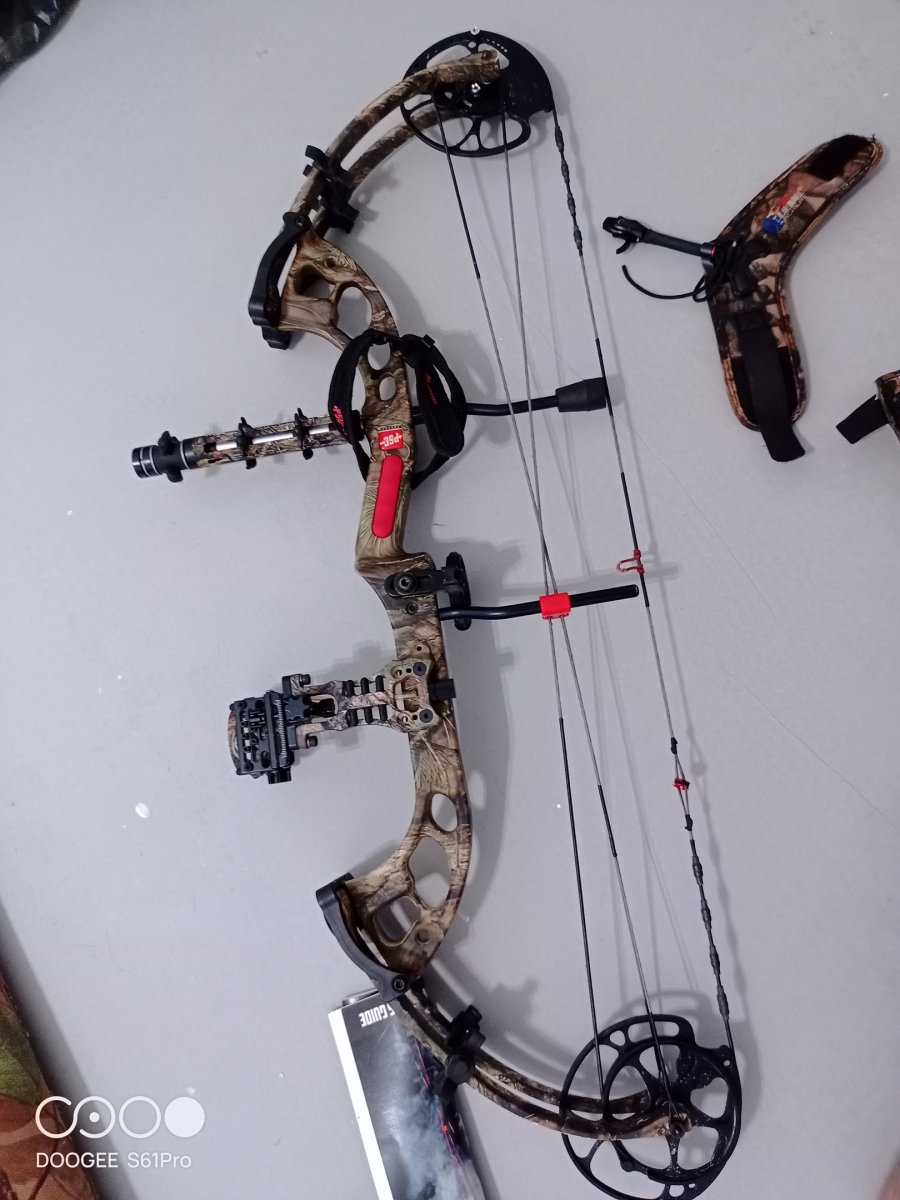 Прицел HOYT на 5 пинов. С него тоже не стрелял , только прикрутить в свое время успел. Штатный прицел который на нем стоял отдам также в нагрузку.