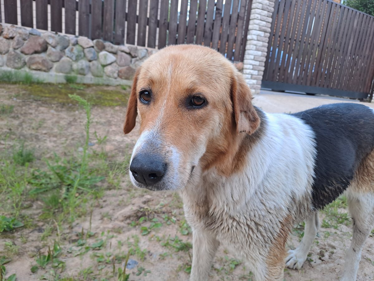 Около двух месяцев назад в наше садоводство прибилась сука, предположительно метис русской гончей. Поиск хозяев по близлежащим населенным пунктам результата не дал. Ветеринар осмотрел, собака здорова, возраст около трех лет, стерилизована, но похоже, что бегает давно. При этом явно обучалась когда-то, при обнаружении ежа или кошки лает, зовет. Контактная, ласковая. Очень хочется передать в хорошие руки (себе оставить не можем, два кобеля в наличии).