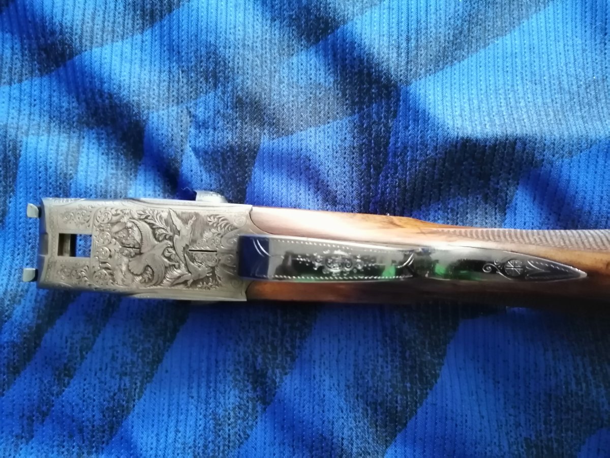 - Ружье ухоженное, в хорошем сохране, из дефектов присутствует небольшой сыпок за патронником, в правом стволе чуть больше чем в левом.