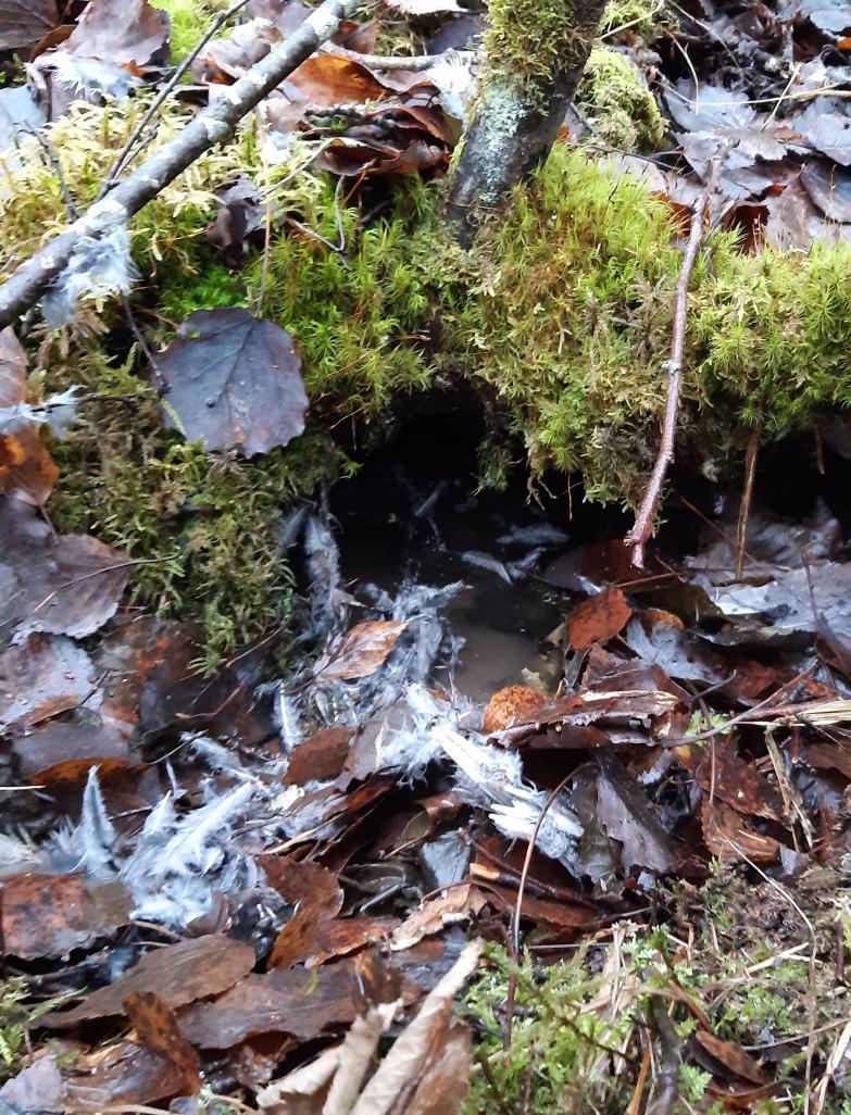 Падал с дерева камнем, но видимо сил хватило чтоб спрятаться, без собаки точно бы не нашли, причём это уже второй такой за эту осень