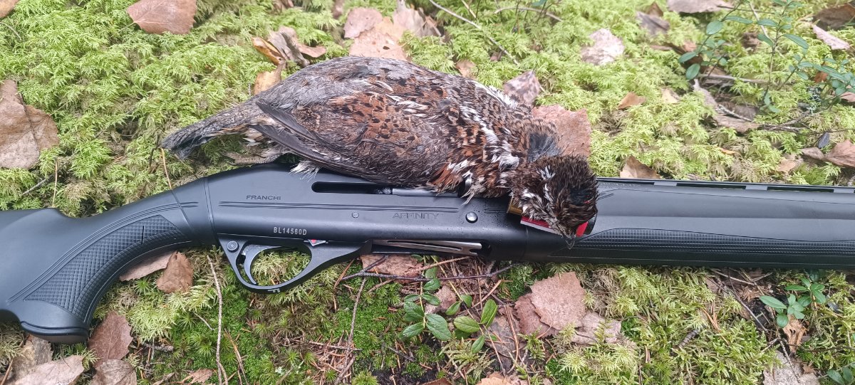 ровно после щелчка фото с телефона я услышал справа неожиданное Фррр и это после моего свиста минут 10 назад!. Рябчик на елке в 6-6м от меня, дистанция очень короткая для стерлинга 5-ки контейнера, но я вообще про всё забыл, не делая резких движений положил кружку, другой рукой вскидываюсь, целюсь чуть выше чтобы не разбить тушку в труху. Огонь. Стрелок из меня отличный: я отделил здоровенную ветку от елки где он сидел...