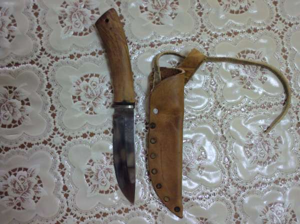 Покупал я его за 2300 руб. нож родной, сам клинок кованный , заточку держит хорошо, ручка кость, а если искать минус, то наверно один, нужно после использования протирать что бы не ржавел. И сама ковка интересная такое ощущение, что сделано слоями.