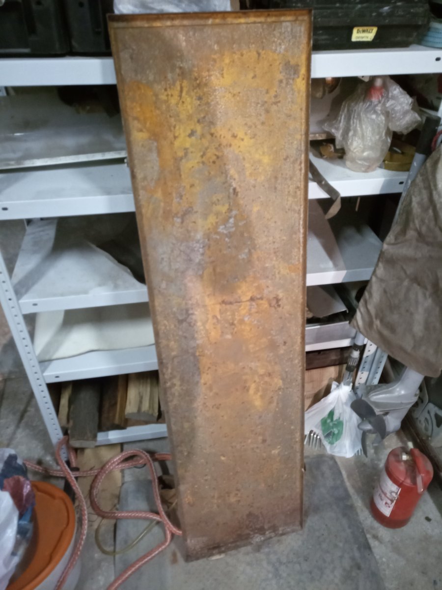 Делал себе на заказ лет 20 назад, но не понравилось купил готовый. Сейчас разгребаю гараж. Сталь около 1-2 мм (точнее не замерил) Размер высота 1300 мм, ширина 350 мм, глубина 250 мм. Требует зачистки, грунтовки и окраски. Ибо все же в неотапливаемом гараже. Самовывоз СПБ, Александра Матросова 5В по согласованию - это из КАС.