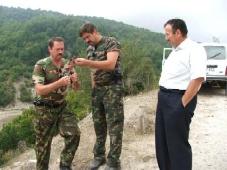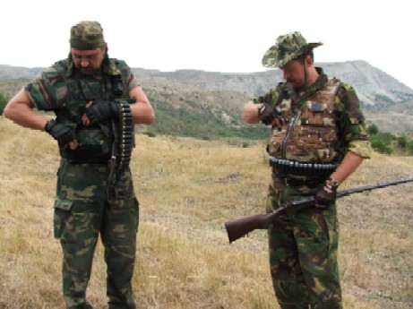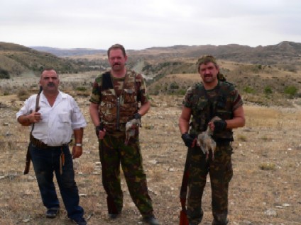 После знакомства с горными достопримечательностями, мы, облачившись в охотничью одежду, выдвигаемся в район охоты. От деревни это примерно в 30-40 км. Как сказал Адиль – «Вон за той горой». Так и ехали, от горы к горе. К нам присоединился друг Адиля, Шафи. Так, мы приобрели еще одного друга охотника и почитателя нашего Клуба. Прибыв на место, снарядились, и Шафи повел нас вверх к горному озеру. Там мы подняли стаю чирков, но все промахнулись, и Шафи повел нас к верхнему озеру, куда улетела стая. Замечу, что все лазания к озерам, происходили на высоте 1400 м над уровнем моря. У второго озера, из камыша, со свистом поднимаются чирки. Выстрелы и стая уходит за соседний склон. Одного чирка сбивает Шафи, но мы долго ищем его. Гена находит птицу под кустом терновника. Почин положен. Начинаем спуск к лагерю. Из под ног, с незнакомым клекотом, вылетает стая горных рябчиков. Неожиданно, незнакомо, необычно. Стреляем. Откровенно мажу. Шафи берет одного. Стая пролетает вниз метров 30 и исчезает в кустах, сливается с желтой землей. Медленно спускаемся и снова резкий вылет стаи из под ног. Опять стреляем, опять мажем. В конце концов, стая улетает за склон горы, и мы собираемся в лагере. Солнце палит нещадно, но ветерок в горах прохладный. Но на этом наша беготня по горам не заканчивается, хотя очень хочется упасть в тенек под алычу. Шафи ведет нас в русло реки, где круты склоны поросли терновником и облепихой, а сама речка пересохла и превратилась в ручеек. Шафи идет по руслу, а мы с Геной движемся по склону в 30-40 метрах друг от друга. Лучше бы я шел по болоту! Камни выскальзывают из под ног. Колючки царапают руки и цепляются за одежду. Все сливается в глазах – серые камни, серая земля, серо-зеленые листья растений. Вдруг, от Шафи, поднимаются серые кеклики, горные куропатки. И громким хлопаньем и гортанным клекотом, стая сворачивает в нашу сторону и поднимается над склоном. Выстрелы Шафи, Гены. И на меня выходит «кусочек» стаи. Дистанция около 40 м. стреляю, и кеклик падает на склон. Замечаю, куда села стая и карабкаюсь за битой птицей. Так вот ты какой, горный кеклик! Серый, под цвет камней, с черными и оранжевыми перьями у спины. Поднимаюсь на склон к тому месту, где спряталась стая. Уже глаза привыкли, уже готов к выстрелу. Так и есть. С шумом, из под камней, вылетают куропатки. Выцеливаю одну и стреляю. Опять дистанция 40-50 м и кеклик падает. Потом уже, Адиль объяснил, что патроны рассчитаны на дальние дистанции, и вылетающих из под ног птиц надо отпускать подальше. Так вот у них охотятся в горах.