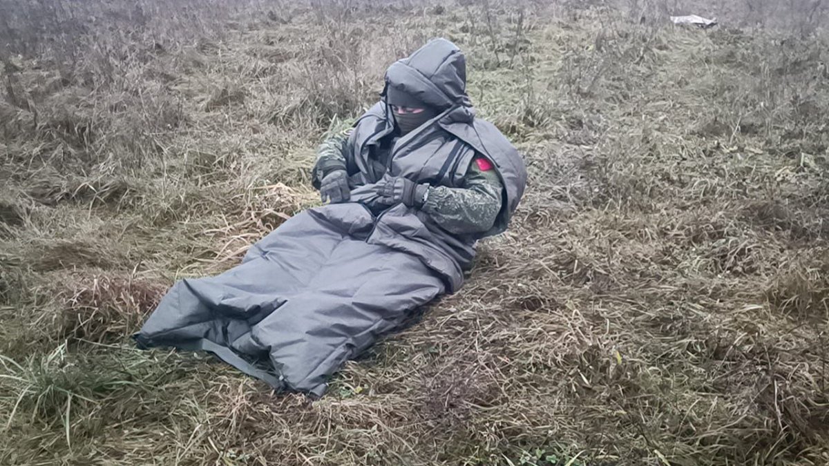 6. В случае необходимости экстренный сброс спальника в режиме пончо занимает не более 5 секунд; 7. Обеспечен легкий переход из режима пончо в режим спального мешка и обратно; 8. В режиме пончо обеспечивается тройная защита при посадке на холодный грунт, что актуально при маршах, наблюдение или засидке для охотников в холодное время года;