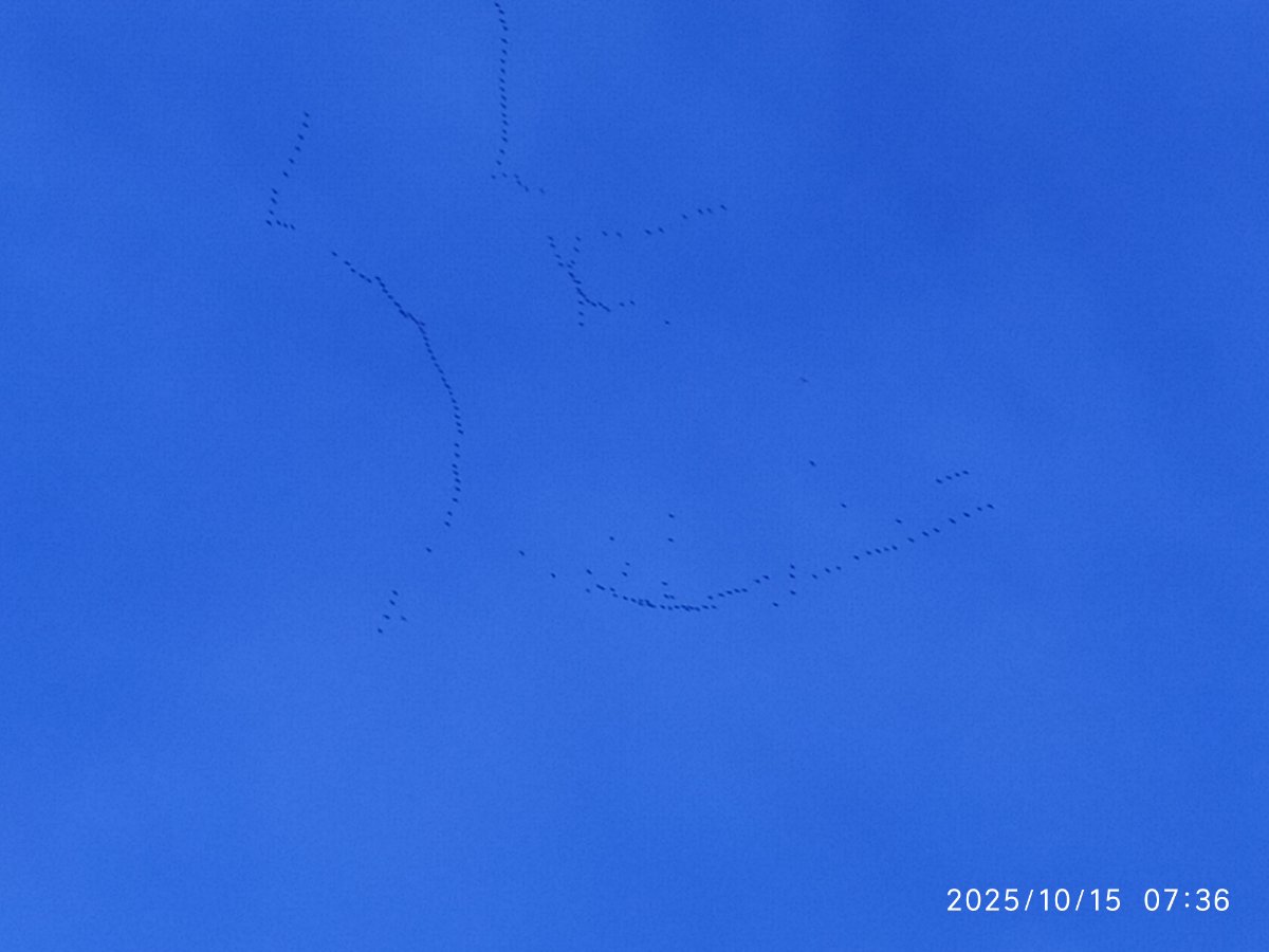 Прям сейчас, за две утренние сигареты - пять стай! Все большие, но высоко, потемну гораздо ниже шли