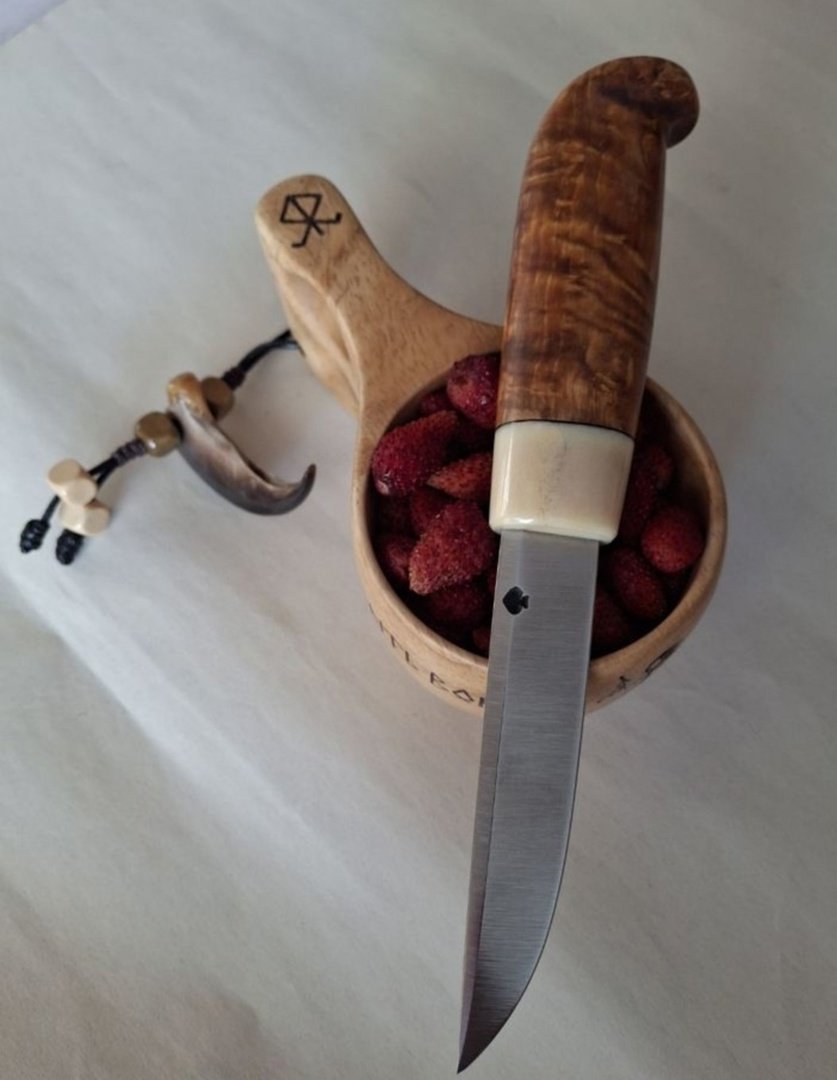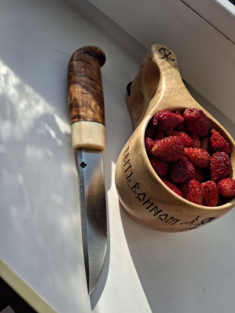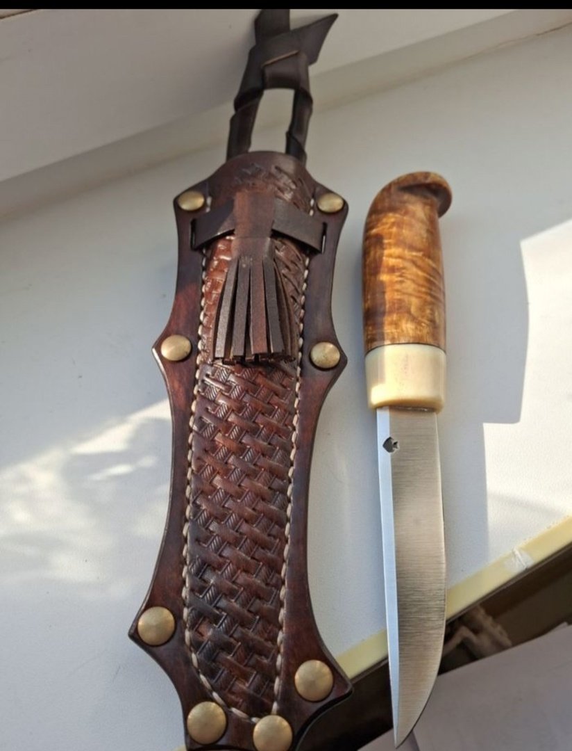 Приветствую, уважаемое сообщество, продам нарядную финочку, клинок ромбик Павла Логинова 95х18,100х20х3,5мм, хвостовик 95мм, твёрдость 60 hrc, рукоять стабил. карелка,рог, длинна 110мм, в руку ложится очень удобно, ну и разумеется кожаные ножны, нож заточен, находится в Нижегородской обл. цена с пересылом 9000 рублей, автора ножа не помню.....нож полочник, находится в Нижегородской области...