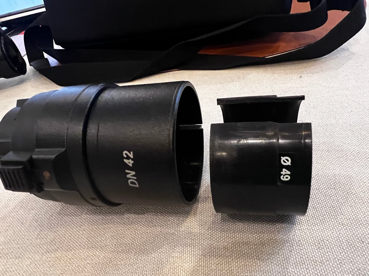 В комплекте оригинальный кофр, окуляр для гляделки, адаптер на прицел (сейчас стоит на диаметр 42мм, есть кольца и на другие диаметры объектива). Работает на батарейках СR123 также отдам аккумы R123 (с зарядкой для них) но дольше работает именно на батарейках СR123.
