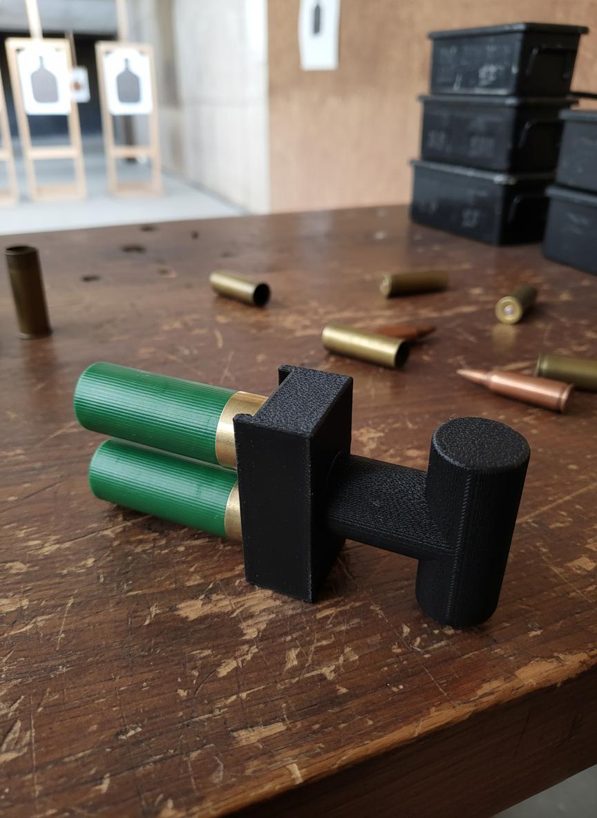 Поскольку у большинства начинающих стрелков первым ружьём всё же остаётся двустволка, этот магнитный держатель патронов 12 калибра отлично зайдёт для тренировок - привнесёт больше фана в отработку скоростной перезарядки и поможет оттачивать навык, пока опыт не позволяет перейти на оружие с магазином большего объёма.