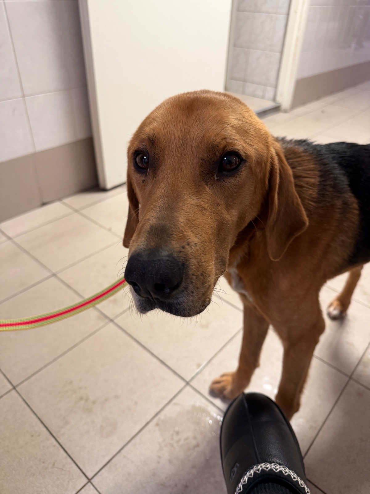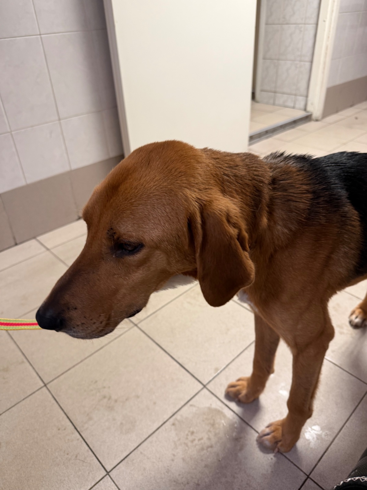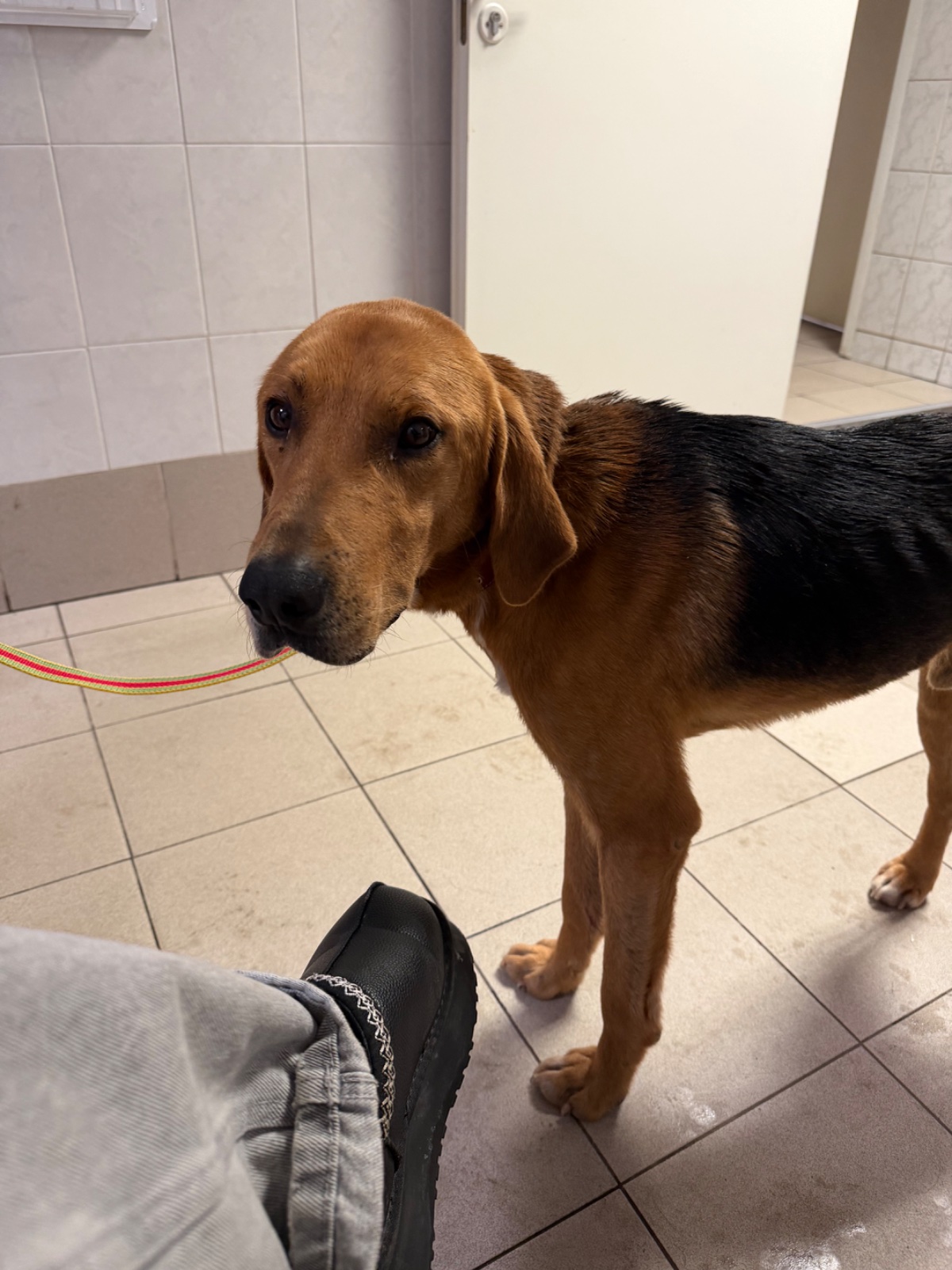 Вчера нашли песика на трассе на Санкт-Петербург за Локней, бегал посреди машин .
