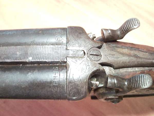 ..знакомый мужик (металлург со стажем, 50 с гаком лет) после покупки дачи в Курганской обл., где много-много (не рыжих обезьян) всякой дичи загорелся поохотится. Пошёл он самым простым и только старшему поколению понятным путём. У своего сослуживца, тоже металлурга ещё с большим гаком за (60 мужику) он преобретает ружьё курковое в идеальном состоянии, но не стоящее (или давно не продлённое, или потерянное) на учёте. Пригласил меня глянуть. Заглянув в стволы я понял ружьё почти не стрелянное. Сначало было впечатление, что это просто хром покрытый пылью..после прогона маслянного шарика из тряпки я понял, что хрома нет, а это просто идеальный ствол. посмотрев клейма на колодке и стволах для себя понял, что это 16 калибр, курковка, сужения стандартные (о,5 и 1,0), и 1958 г.выпуска. Производителя нигде нет, может не так смотрел, но неувидел. Покрытие лак (кое - где облуплен), дерево-бук. Приехав домой заглянул в Кнригу Трофимова про отечественные гладкоствольные ружья. По всем параметрам это ТОЗ-БМ с нехромированными стволами. И я "заболел" забрать это ружьё у Васидия Васильевича. Это ружьё он купил за 500 рублей (!) и тут же потерял цевьё от него.