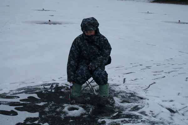 И вот 26 с женой поехали на рыбалку.Маленько опаздали к рассвету.На льду уже сидели рыбаки.