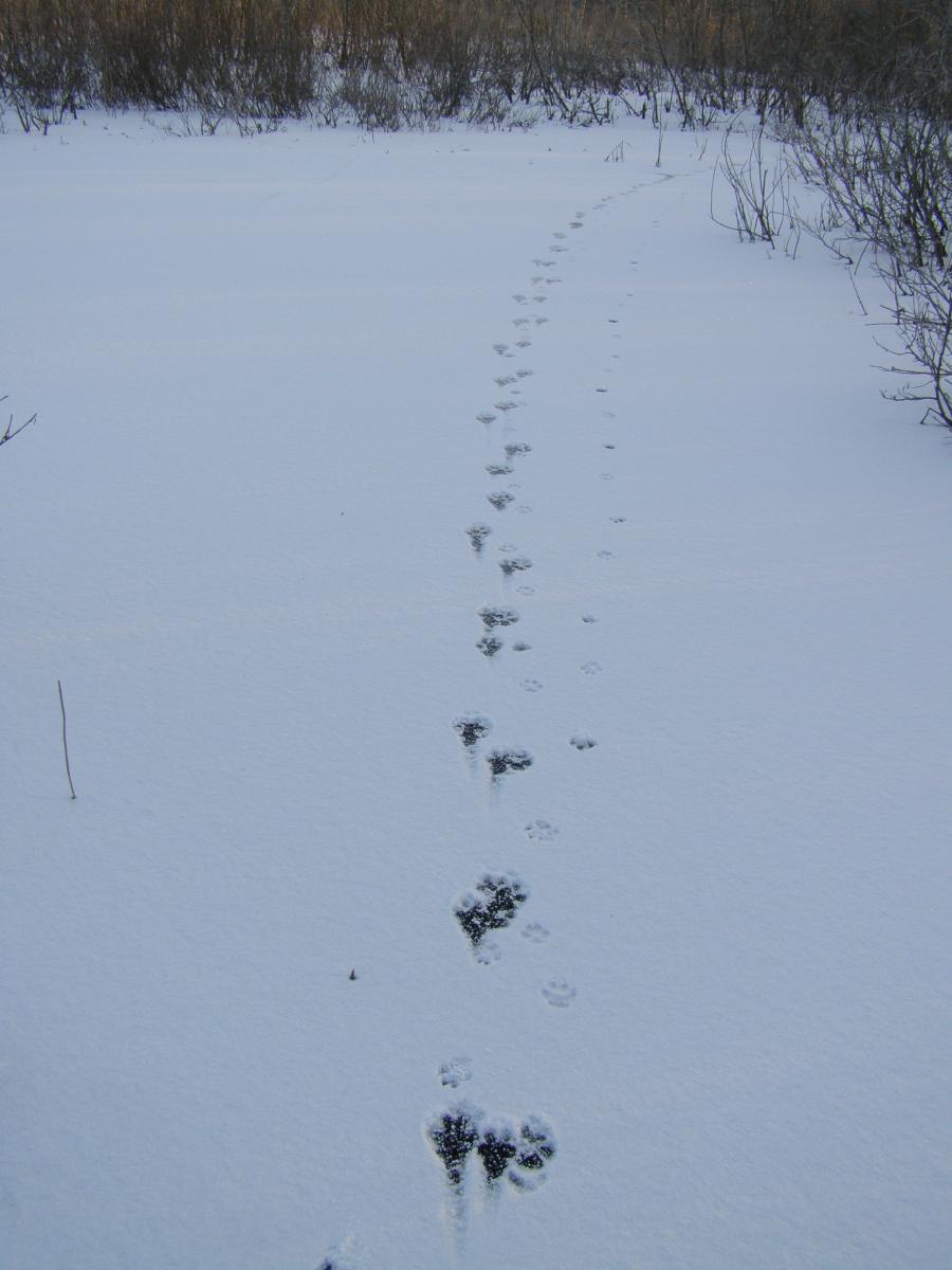 Хата в два моих роста (что то около 4 метров в высоту) и следы волк + молодой лисовин.