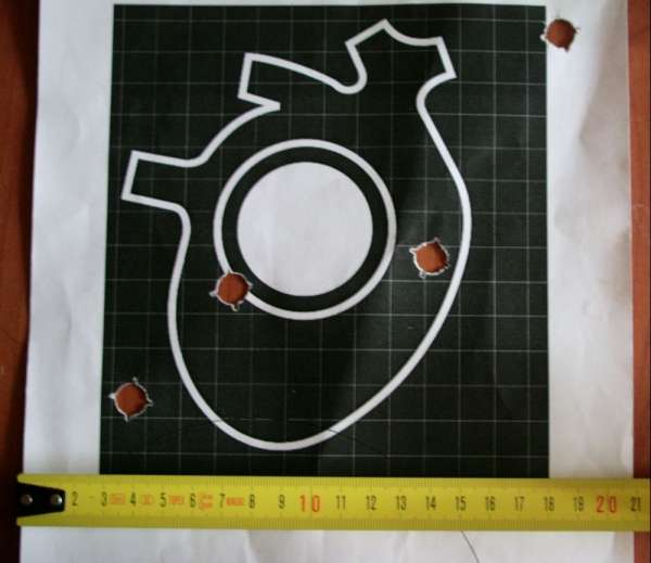 Подтверждаю результат, держал лично в руках эту мишень. В это время (приехали вместе) пристреливал свой Вепрь с новыми патронами. "Смотритель" в трехсотметровом тире сам удивлялся и показывал другим такой полтергейст. Честно, сам не верил, что на 100 метров можно так положить гладкие пули. Теперь сомневаюсь, а нахрен мне нужен нарезняк?