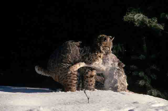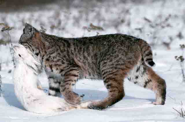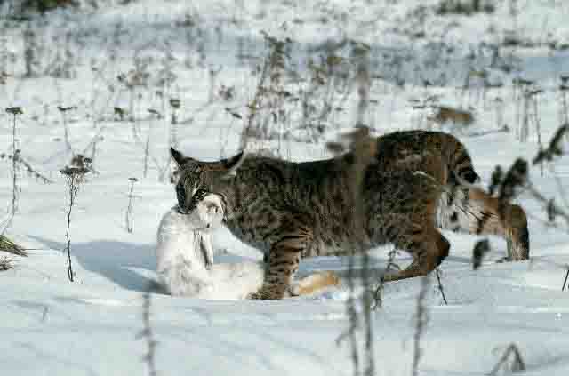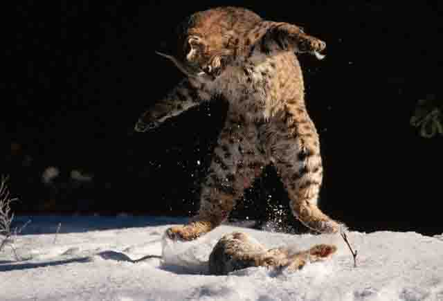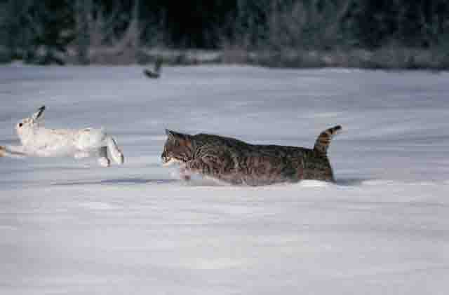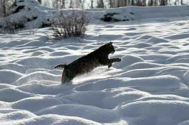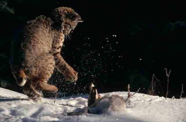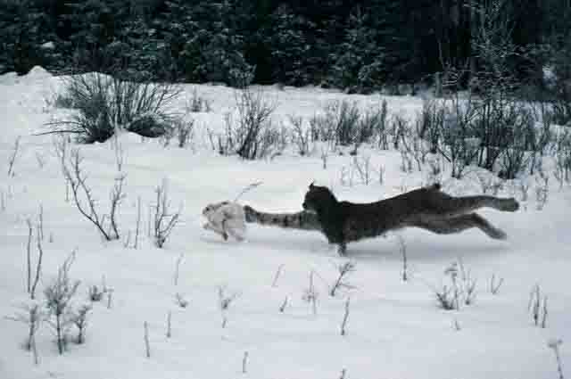 Кошки бывают разные. Дикие, домашние, красивые, чёрти какие, иногда попадаются дрессированые. А некоторые сразу вызывают чувство: "Хрена ты меня приручишь или отдрессируешь. Может, если будешь знать кто Я, мы с тобой подружимся. Если я захочу.". Её редко увидишь, ведь это она - охотник. Ещё реже её можно увидеть с парой - она одиночка. Ещё реже можно увидеть охоту этой кошки. Скрытная северная одиночка. Да, это всё про рысь... Спасибо фотографу, который смог поймать мгновения охоты этого Зверя.
