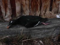 Через пару часов налетает долгожданный турпан – анды по-якутски. Пропускаю, т.к. от меня далековато, а на напарника должен нормально найти. Но не находит и, получив пару выстрелов вдогонку, удаляется восвояси. Я тоже получаю… выговор, что не стал стрелять. Обещаю, что он еще вернется и я исправлюсь. Ждать «возвращения» пришлось около часа. После первого выстрела только качнулся, после второго падает кувырком через крыло и сразу ныряет. Выныривает вне досягаемости наших дробовиков, но напарник из мелкана достает уверенно. Вообще падение турпана это что-то! Если камнем с высоты, то брызги до луны достают. Или кубарем на скорости по воде метров несколько кувырком.