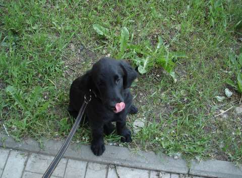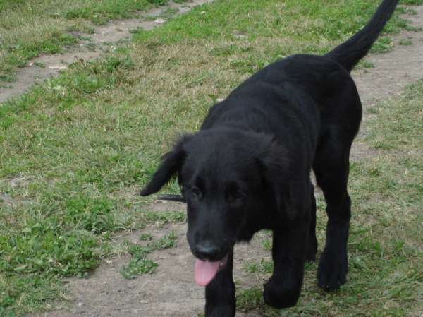 Вот и забрал я своего лохматого друга, тоесть подругу. Собаку породы FlatCoatedRetriver (Прямошерстный ретривет), трехмесячного щена.