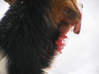 На прямую с серыми сталкивался два раза, и оба раза у собаки раны(различной степени) были в области шеи и глотки. Про то,что волки рвут собаке пах, затем гонят, что бы внутренности разматать, слышал, но не видел. Много слышал, что разом перехватывали глотку, закидывали на спмну и уносили.