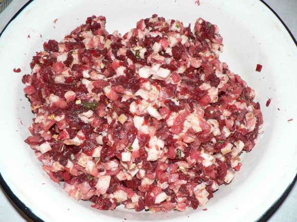 Колбаса в прямой кишке - это всеч. Я кишку еще немного промариновывал в уксусе.