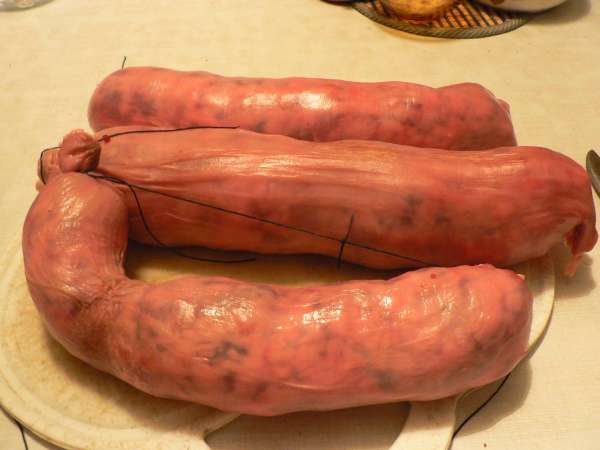 Вот фотки. Фаршик, кишочка замоченая, набитая и готовая.