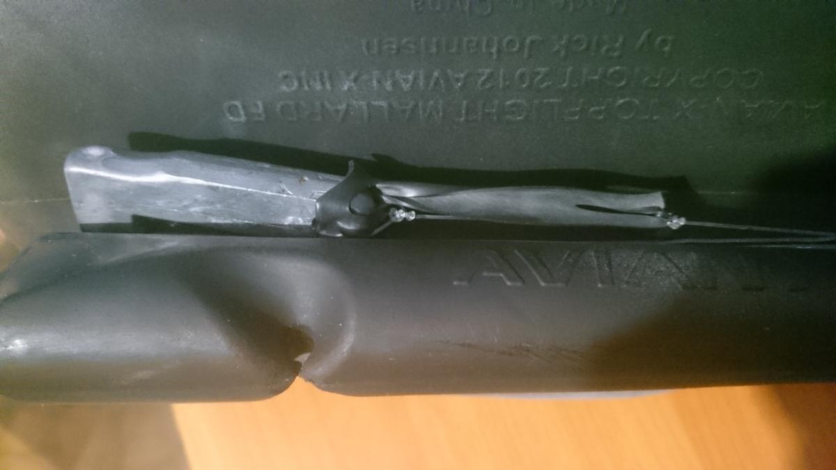 И ещё о длине - её надо подобрать так, чтобы грузик в конце намотки с натягом защёлкнулся, продавленный в щель между самим корпусом и баластной ёмкостью. В этом случае при транспортировке леска не будет распускаться...