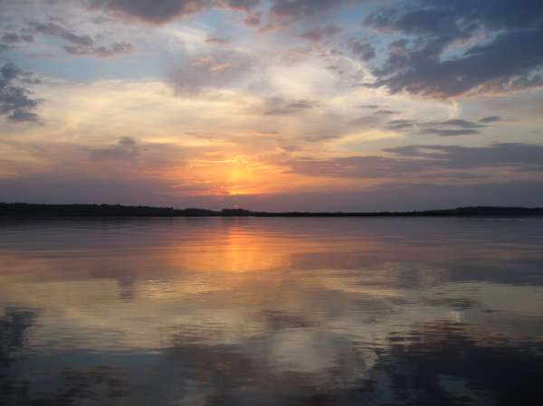 Как все-таки здорово, когда есть возможность все бросить - и душу отвести в таких божеских условиях! Машину прямо к берегу, погрузка 15 минут, по дороге по пиву, пришли на место - чучалки поставили, переоделись и ждемс! За первую кровь таксказать обязательно! Потом за следующую. Потом ждем заката - сидим слушаем, любуемся, неспешно беседуем и готовим ужин прямо в лодочке! Естественно под горячее почучуть