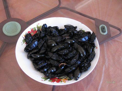 В Таиланде, самые дешевые блюда из насекомых – это кузнечики и муравьи, самое дорогое – запеченный скорпион. Его вам подадут только в дорогом ресторане, обязательно на тонкой лепешке, с легким кислым соусом. На севере Таиланда едят и живых насекомых, особенно любимы живые (они должны двигаться!) муравьи в соусе или в сахаре. Есть желание поохотиться за едой в тарелке – пожалуйста!