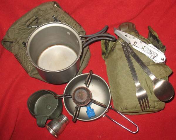 Ну и остальное барахло допотопное. Баллона на фото нет, но он вместе со всей мелочью упихивается в котелок.