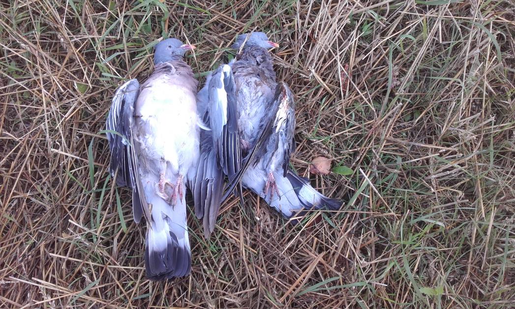 Гулял на прошедшей неделе в Кировском районе с легавой и заметил на небольшом ржаном поле вперемешку с овсом стаю в полсотни вяхирей. Несколько раз поднимались при моем подходе, даже однажды отстрелялся по ним. Из стаи выпали 2 птицы... одна вяхирь, а другая сойка. Стая эта меня заинтересовала, но чучалок с собой небыло - что делать?