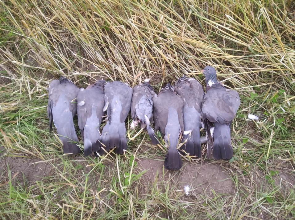 Голубя довольно много. Летает и грядками и парами и в одиночку. Чем меньше тем лучше подлетают. посидел утречком до 9. немного взял. на недельке еще мотнусь. Может чего еще подкосят, а так поля еще колосятся.Утрянка.jpg
