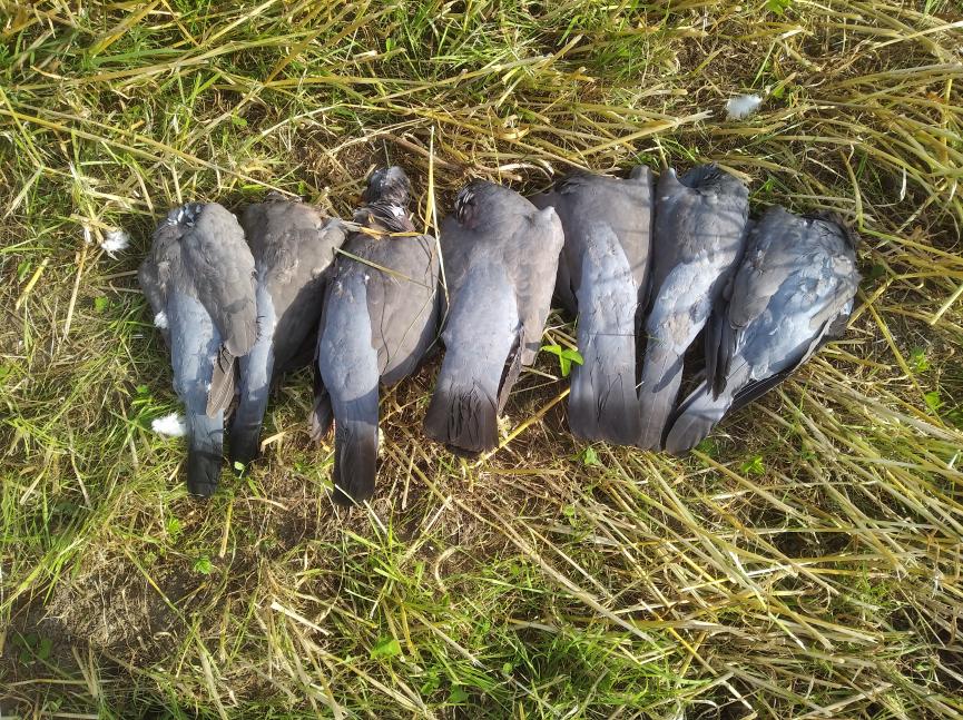 Голубь летал как то порционно - 2-3 налета и минут 20 тишина. Садились и в чучела, и зависали над ними. Был верный шанс на десяток трофеев, но взял только 6.