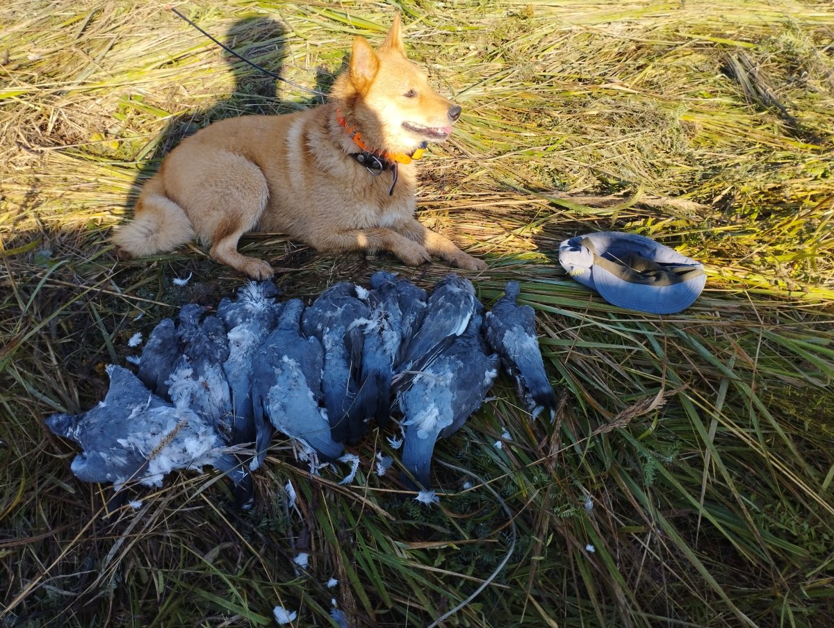 По голубю в этом году получилось очень даже неплохо, хотя с начала ожидался не слишком удачный сезон. Вяхиря еще полно в полях, вчера вечерком добыл еще трёх, а вообще, за сезон на сегодня сорок пять штук!