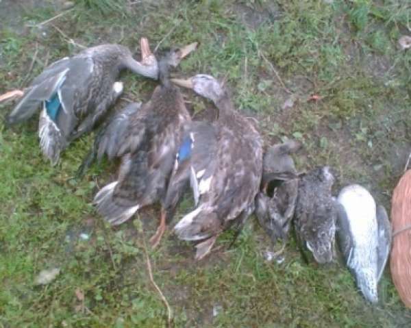Легкий ужин, тостЫ за начало сезона, пару часов сна - в 5 30 полезли в камыши. Утка была, правда немного, стреляли со всех сторон умеренно, правда из болота изредка раздавались очереди. Наш лагерь был виден издалека (брат с приятелем застолбились пораньше, поэтому рядом никого не было). Утро прошло в пристрелке, второпях изрядно мазали, но 6 утей утяжелили рюкзаки (на фото с братом). Ранним днем был сварен традиционный суБчик из потрошков, к вечеру традиционно пожарили шашлык, вечерняя зорька добавила еще 5 шт. к трофеям (второе фото). Утром в воскресенье лета практически не было, но еще 3 штуки были приземелны. Итого 14 шт. на чертверых, из которых 3 кряковых. Встретили местного, который рассказал, что в этом году он практически не видел на озере выводков, видимо весной разогнали.