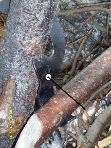 Есть у меня такое оригинальное приспособление, очень облегчающее приготовление еды на костре. Состоит набор из двух фигурных скоб, вырубленных из листовой инструментальной стали, выгнутых и закалённных, и двух фигурных крюков из толстой жёсткой проволоки. Скобы легко крепятся на коле диаметром 5-6 см и удержиают перекладину, на которую на проволочных крюках и вешают котелки. Мне при подготовке кострища не требуется долгий поиск подходящих рогулек, положение слоб на кольях легко регулируется по высоте. Один раз вбитыми кольями я пользуюсь по нескольку лет (если их никто не вырвет и не унесёт).