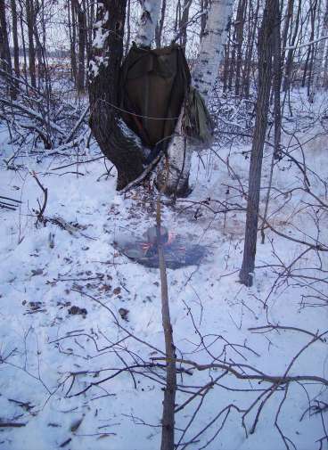 из елки и сосны плохо. смола быстро вспыхнет и рогатина прогорит. сырая береза и то после хорошего костра за ночь прогорает. хотя полностью не прогорает. но можно и из них. просто подальше надо ставить. но ходить неудобно.