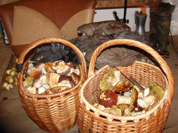 Сходил сегодня в лес. Глухаришек погонять(чтоб не расслаблялись :9: ) грибочков посмотреть. При первых-же шагах выяснилось что грибников в лесу чуть меньше деревьев. А по сему глухаря не попадается.Побродив часок решил пора уже начинать под ноги смотреть.А грибов то оказывается много, та-ак берём только белых.Поднабрав грибков чуствуя приятную тяжесть за плечами начинаю размышлять(заворачивая к машине)