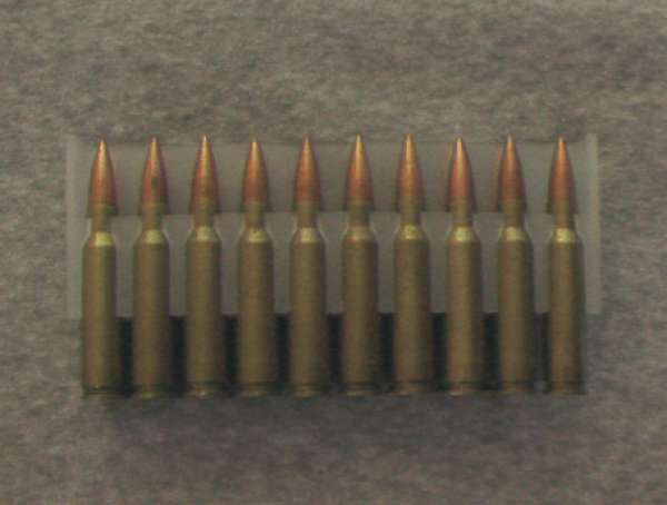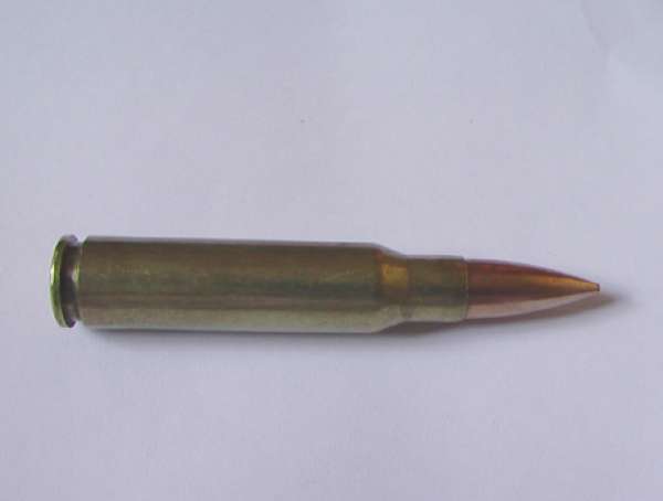 армейский патрон калибра 5,45 мм создан в начале 70-х годов группой советских конструкторов по руководством В. Сабельникова для новой системы автоматического оружия Калашникова малого калибра (индекс 7Н6). Начальная скорость пули - 900 м/с, V25 - 870-890 м/с, баллистический коэффициент приблизительно 0,25, давление пороховых газов J - 308,9 МПа, дульная энергия - 1383 Дж. По результатам замеров, у барнаульских патронов начальная средняя скорость составляет 922 м/с (859-931 м/с).