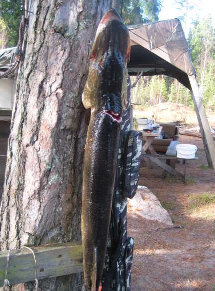 А вот часам к 18, когда уже пора было сворачиваться, Володя, мой напарник и якорный, цепляет щуку на 3,3 кг.