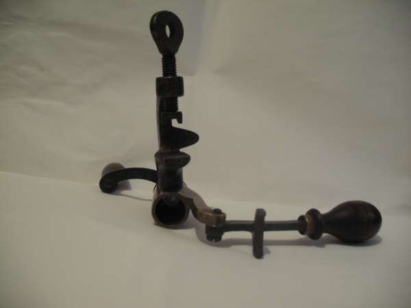Старая вещь. Происхождение трудно определить. Вариантов закруток было очень много. Насколько я понимаю патрон вствляется в оправку, поджимается вилкой рычага и крутишь ручечку. После закатки нажимаешь на шток и выталкиваешь патрон из оправки.