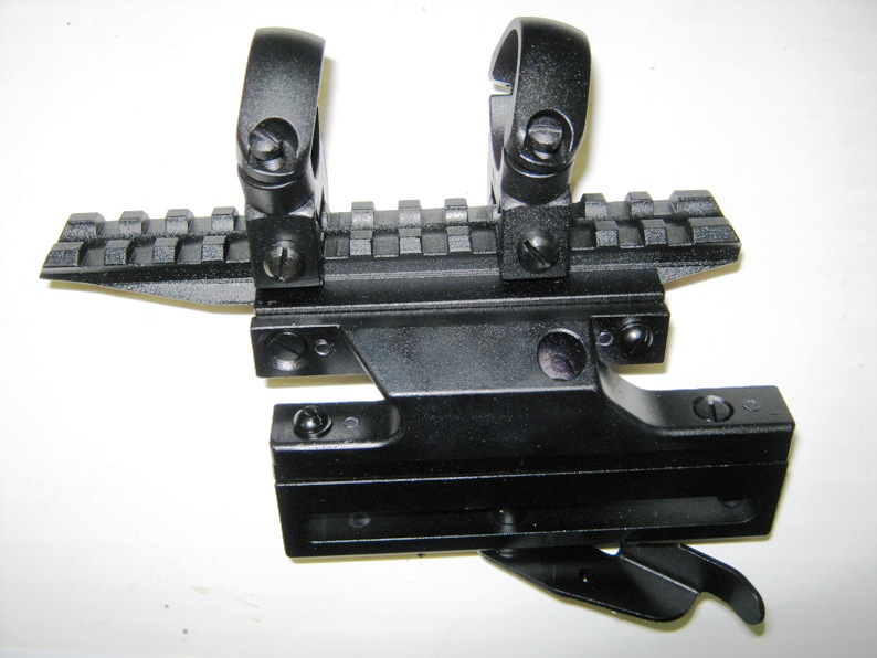Типа такого - В3-1в. Дюралевый, из нескольких частей, соединенных винтами, оптическая ось стоит очень высоко над осью ствола. Как ни проклеивал соединения, как ни затягивал винты - добиться нужной точности и постоянства боя с оптикой не удалось. С 1ПН58 - сколько стрелял - столько и добывал зверя (за всё время, насколько я помню, ушло только два подранка). С дневной оптики за всё время её использования добыл только одного лося. Но промахов, даже со сравнительно небольшой дистанции, - было предостаточно. И по лосю, и по лисе, и по косуле. Как пример - пристрелял, проверил дневную оптику. На охоте стреляет с 70 метров по козлу - промах. Берем щит 1х1,5м, пробуем. В щите со 100м нет попадания. Надоело выслушивать упреки и издевки товарищей по поводу постоянных промахов (а дневная оптика используется, в основном, на коллективных охотах) - приобрел сравнительно дешевый загонник Льюпольд серии R (кроме кронштейна под подозрение попала и трубка) и стальной цельный боковой кронштейн под 30мм трубку.