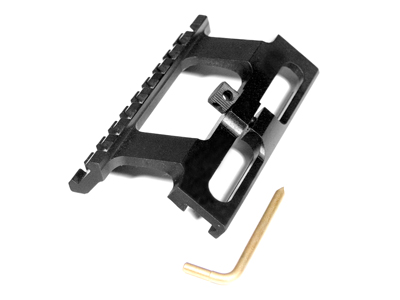 Получилось, что трубка загонника стоит низко над ствольной коробкой, хотя сам прицел чуть и смещен влево (точно не мерял, но по высоте и по горизонтали намного отличается от ПСО). При необходимости можно стрелять через открытый прицел - труба оптики не мешает этому. Снимается - ставится оптический прицел на раз-два: продвинул кронштейн вперед по боковой планке до упора стопорного винта в планку и зажал рычаг. Всё.