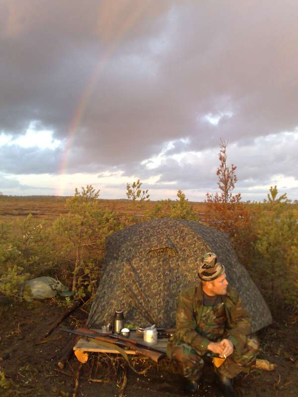 ! Я в последнее время и массеть не таскаю, обхожусь местными средствами маскировки. Кочку посуши, обтыкаю елочками , припорошу мхом....засидка готова. Про манок и речи нет, беру провереный и еще на проверку новых пару.