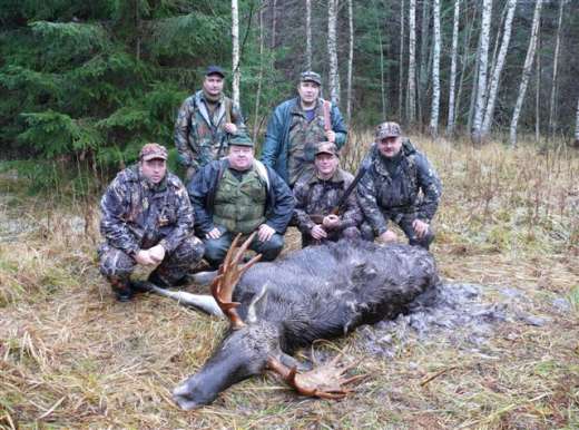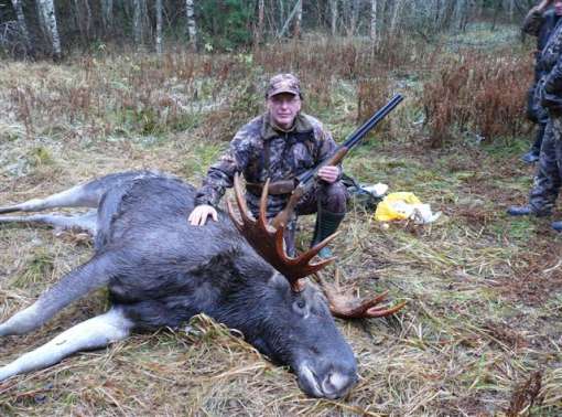 Эту охоту в Тверской мы планировали загодя на начало ноября,тем более, три дня выходных предстояло. Как только переехали Медведицу, заморосил дождь, который с небольшими перерывами не прекращался до следующего утра. Гостиница старенькая, без горячей воды, телек в единственном числе в комнате администратора, но и цены советские. Нас устроио, был бы кров. А дальше, как обычно. Сначало за прошедший день рождения( у товарща он был двумя днями раньше),а после двенадцати уже за мой, обмен подарками, еле угомонились. Утро было неласковым, дождь уже шел со снегом, до егеря ехали километров тридцать по гравийке,болела голова. Инструктаж был коротким,главное не стрелять по корове. На вопрос,что с собой брать,кто то из местных заметил,не плохо бы ружье, другой остряк добавил,что можно еще патроны. На номерах нас было двадцать,восемь наших, остальные местные.Чтобы было без обид,егерь расставил всех вперемешку. В моем секторе , по длине где-то метров сто двадцать, был один прогал и одна полянка,в остальном сплошной лес. Хорошо хоть с ружьем угадал, с карабином здесь делать нечего. С веток капала вода и барабанила по опавшей листве,слушай,не слушай лес- все бесполезно. Уже минут как сорок шел загон,а собак и загонщиков не было слышно , ныла спина.Вдруг справа от меня за поворотом дороги раздался одиночный выстрел и прокатился эхом вдоль номеров,выводя стрелков из оцепенения. Вот, ведь кому-то повезло, пронеслось в мыслях,надо быо егеря попросить ,чтоб поставил на нормальный номер в честь дня рождения, он должен знать, где переходы у зверя.И было грустно,и было обидно. Мне показалось ,что с момента выстрела,до того как я услышал треск в лесу, прошла вечность.Как оказалось в последствии ,стрелял мой знакомый из карабина метров за двести, не попал, но от выстрела лось развернулся опять в загон.Я стоял напротив полянки и мне пришлось бежать к заветному прогалу. Теперь я уже слышал и собаку, она вновь подхватила зверя и гнала в мою сторону. Я еще не знал,по кому работает лайка,но сердце уже колотилось от волнения.Когда рогач показался в прогале, я выстрелил. Он прошел еще метров двадцать и упал на полянке,ставшей для меня счастливой.Я принимал поздравленья. И кончился дождь,и близко дорога, не надо тащить, и было, что выпить на крови, и классный подарок на день рождения. В этот день мне исполнилось пятьдесят.