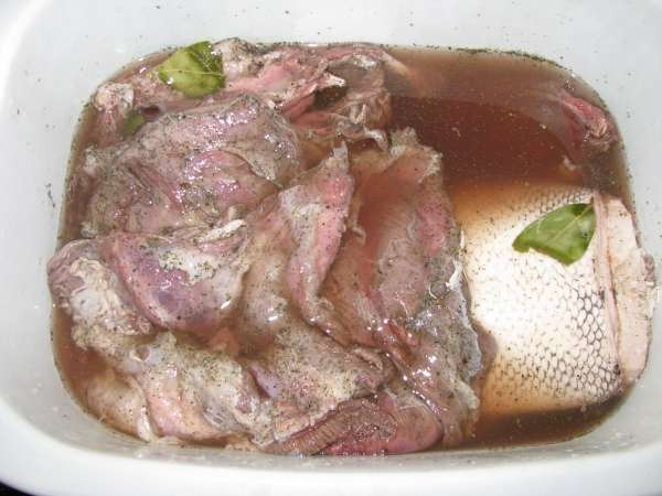 Я бобра кисленького люблю, поэтому делаю в уксусе, эссенция, вода, соль, перец, зелень, приправы по вкусу. Все просто. Держу его обычно трое суток, но часто уже невтерпешь и делаем через сутки, друзья подгоняют...)))))))))).