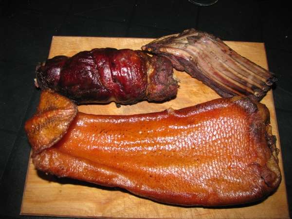 Ребрышки и рулеты получились просто объеденье, даже привереда дочурка протянула руку за еще одним куском , а вот хвост попробывал - как копченое сало, только намного нежнее, типа палтуса что то, только с мясным привкусом.Правда он теплый еще, засунул в холодильник, ибо жир аж текет с него, пусть застынет немного.:)