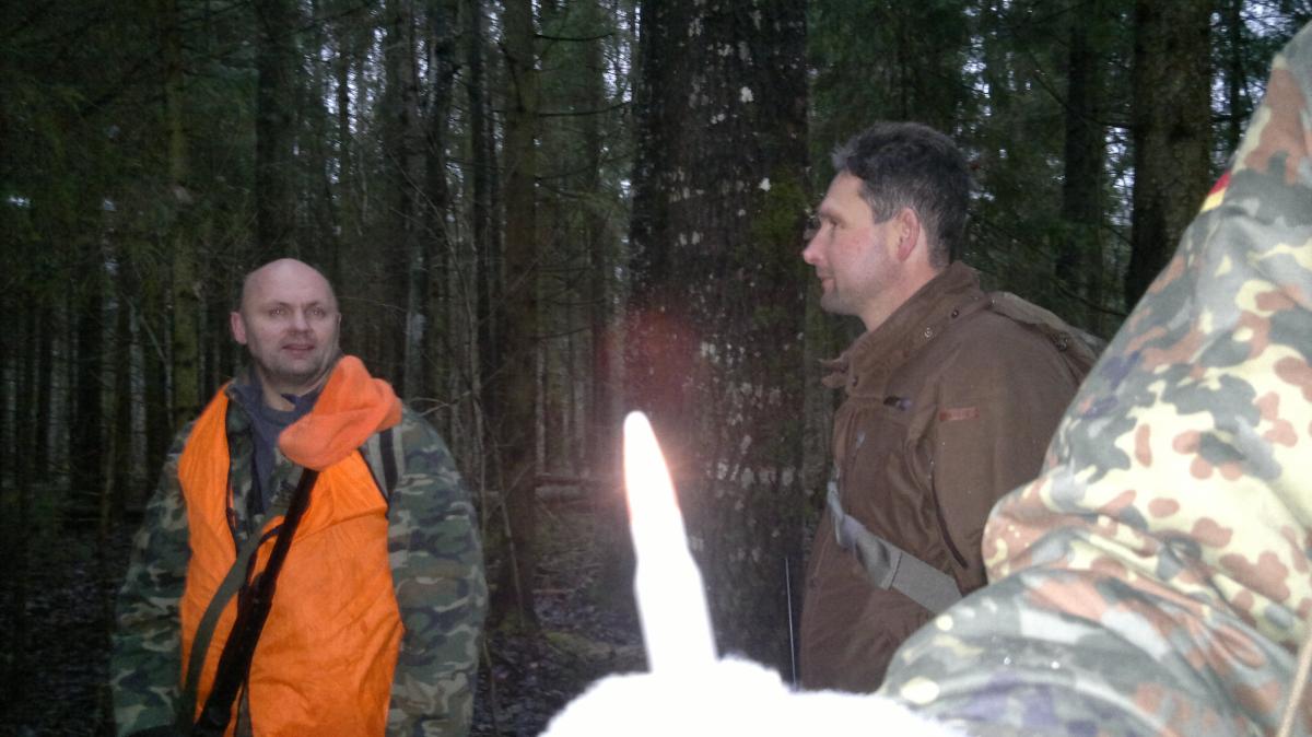 По краям местные, мы в основной линии стрелков. И пошло веселье, пошёл загон. Как работали загонщики... песня. Походу кроме лося из леса могли свалить все. Но свалили лоси, а нам нужен был один. Который собственно и остался лежать перед линией стрелков. Аккурат между Майерсом и Инквизитором.