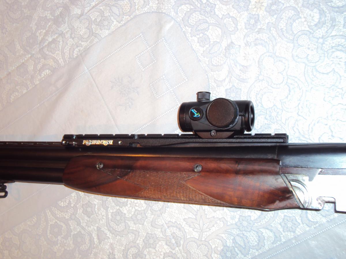 Всех с праздником. Я знаю, многие считают, что на гладкоствол вешать ничего не надо. По поводу коллиматора на наших ружьях мнений много и они разные. Но для стрельбы пулями и на расстояния под 70 метров с моим зрением коллиматор очень даже помогает. Стояла переходная планка на полуавтомате, но чтоб поставить на 34ку пришлось немного подгонять. Отстрел показал очень хорошие результаты и удобство. Установка и снятие занимают минуты. Для стрельбы дробью, особенно в лёт, планка почти не мешает.